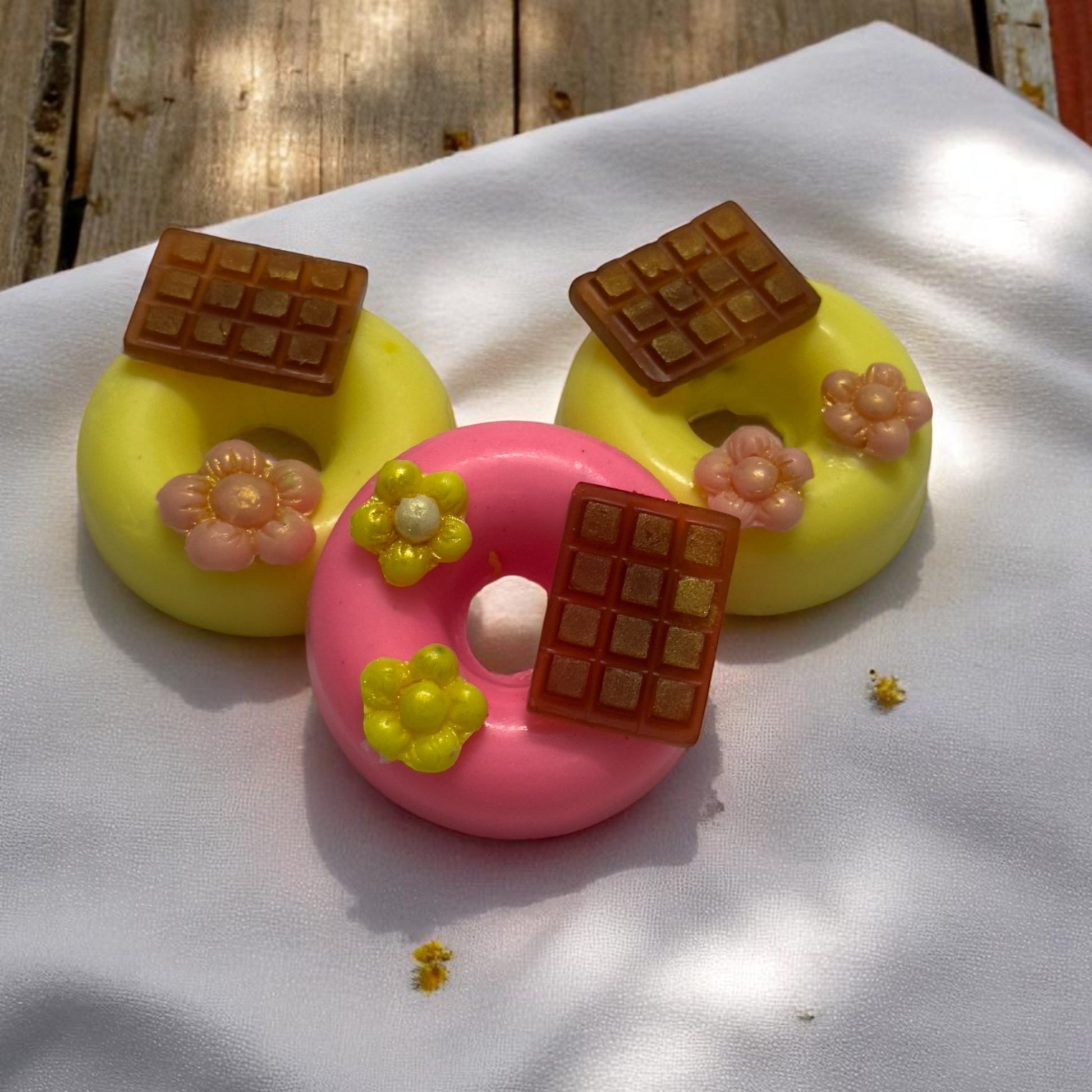 Bring a touch of charm and playfulness to your bath routine with our handcrafted Donut Soaps! Designed to look like delicious donuts topped with mini chocolate bars and floral decorations, these soaps are a feast for the eyes and a treat for the skin. Each piece is lovingly made with skin-friendly ingredients, making it perfect for gifting or indulging in a little self-care.